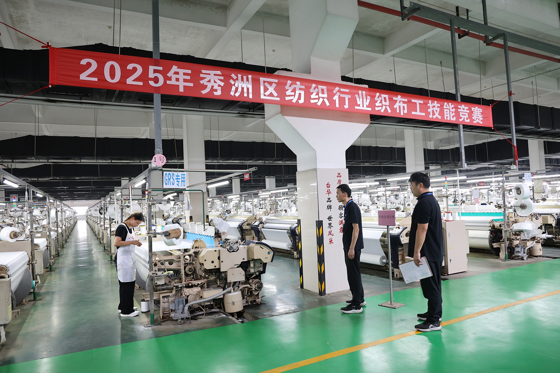 9月24日至25日,由秀洲區總工會主辦、王店鎮總工會承辦的2025年秀洲區紡織行業織布工、整經工兩場技能競賽在臺華集團(嘉興生產基地)火熱開賽?!耙再惖Z技、以賽...